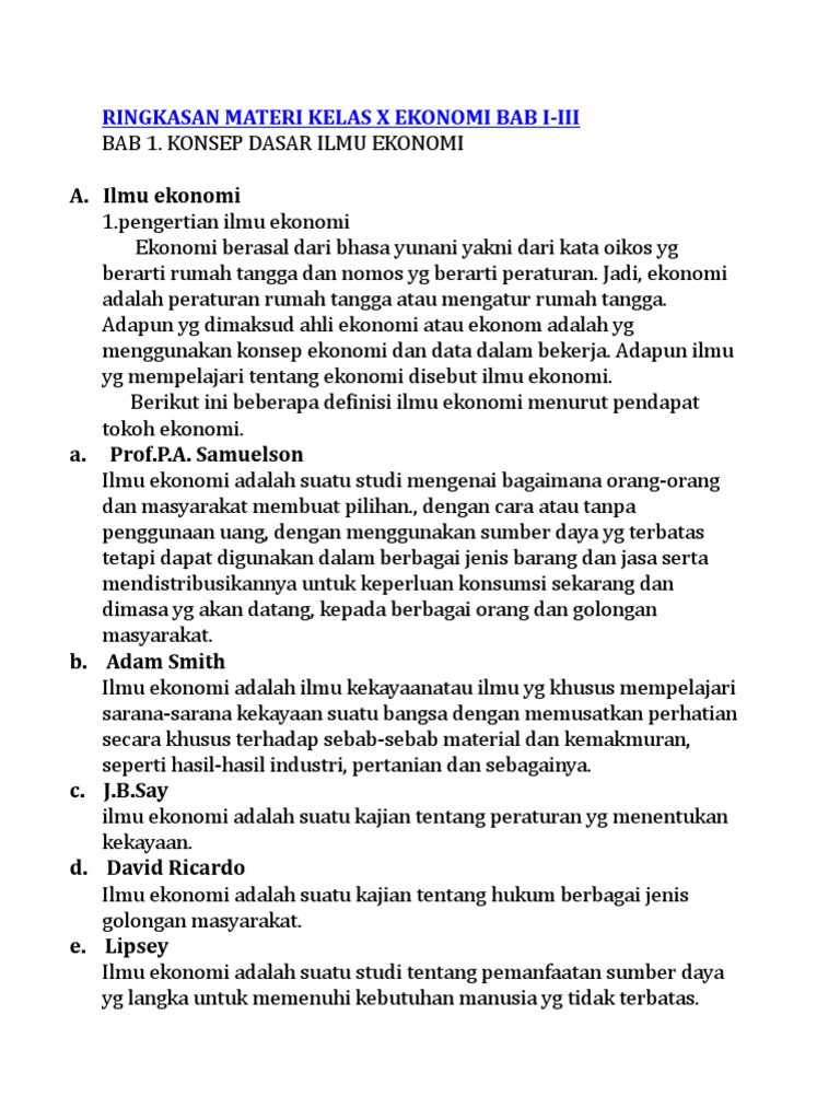 Ringkasan Materi Ekonomi Kelas X Xi Xii from imgv2-2-f.scribdassets.com Ekonomi berasal dari bhasa yunani yakni dari kata oikos yg berarti rumah tangga dan nomos yg berarti peraturan. Rangkuman materi pelajaran ekonomi kelas x (10) sma/ma kurikulum 2013 revisi terbaru tahun 2020. Download rangkuman materi ekonomi kelas 10 11 dan 12 sma untuk persiapan akm dan utbk 2021 dalam bentuk pdf dan ringkasan. Materi ilmu pengetahuan sosial makalah pelajaran ips adalah salah satu pelajaran yang terdapat di sma ma smk negri dan swasta kelas 10 semester 1 dan 2. Oleh karena itu, kali ini akan dibahas secara tuntas tentang bagaimana kebijakan ekonomi pemerintah. Nah kali ini kita akan menjelaskan dan menguraikan tentang materi pelajaran ekonomi sma kelas x xi dan xii. Di postingan kali ini saya akan berikan contoh rangkuman materi ekonomi kelas 10 bab pendapatan nasional. Materi dibahas secara detail dilengkapi dengan contoh soal & pembahasan.