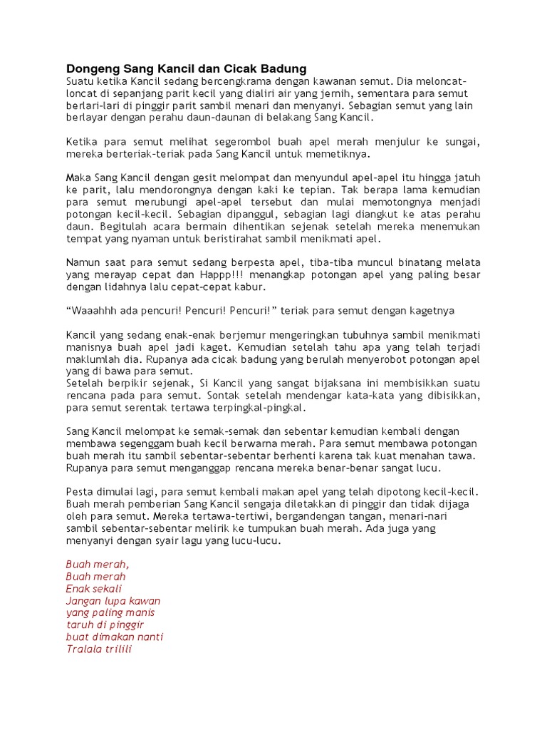 Ringkasan cerita kancil dan cicak badung. We did not find results for: Maybe you would like to learn more about one of these? Check spelling or type a new query.