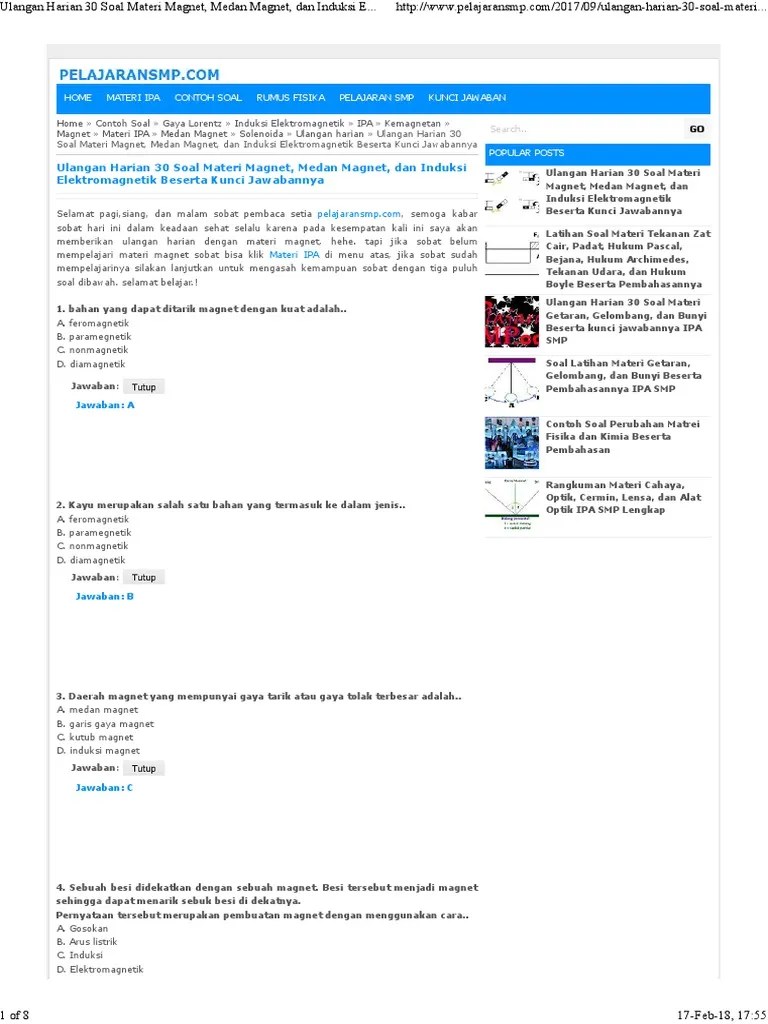 Kumpulan soal dan pembahasan materi fisika kemagnetan fisika kelas 9 fisika.